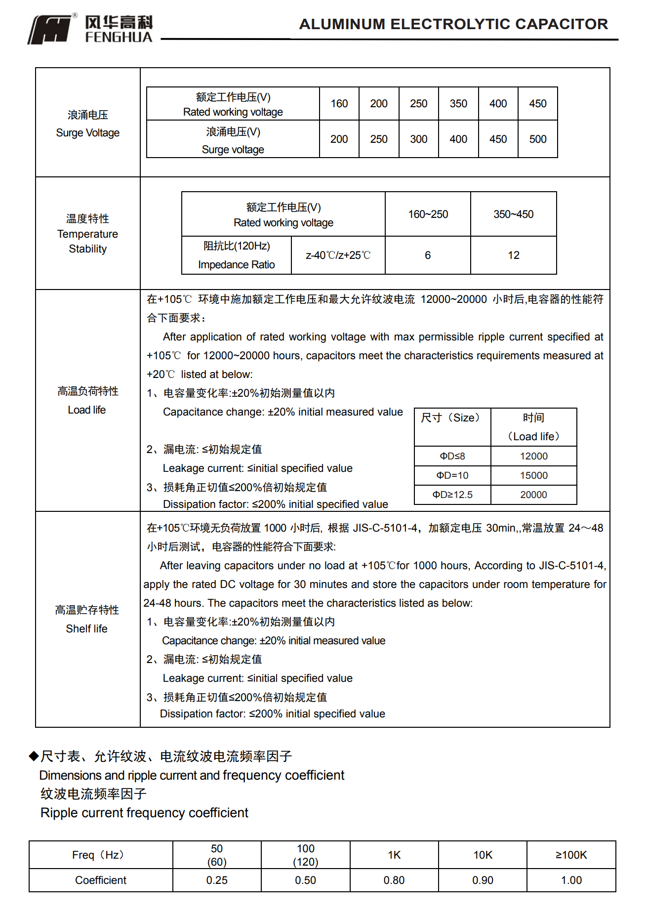 * 寿命: 105℃ 12000~20000 小时