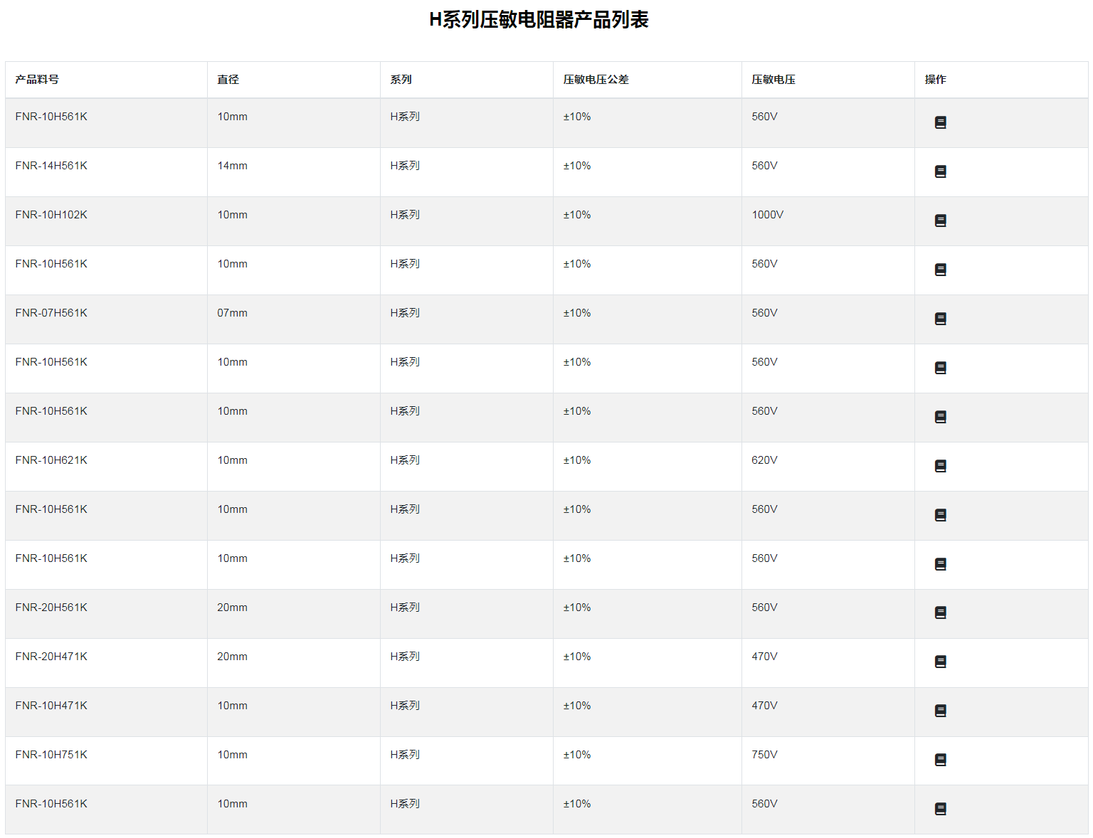 ■H 系列压敏电阻器: